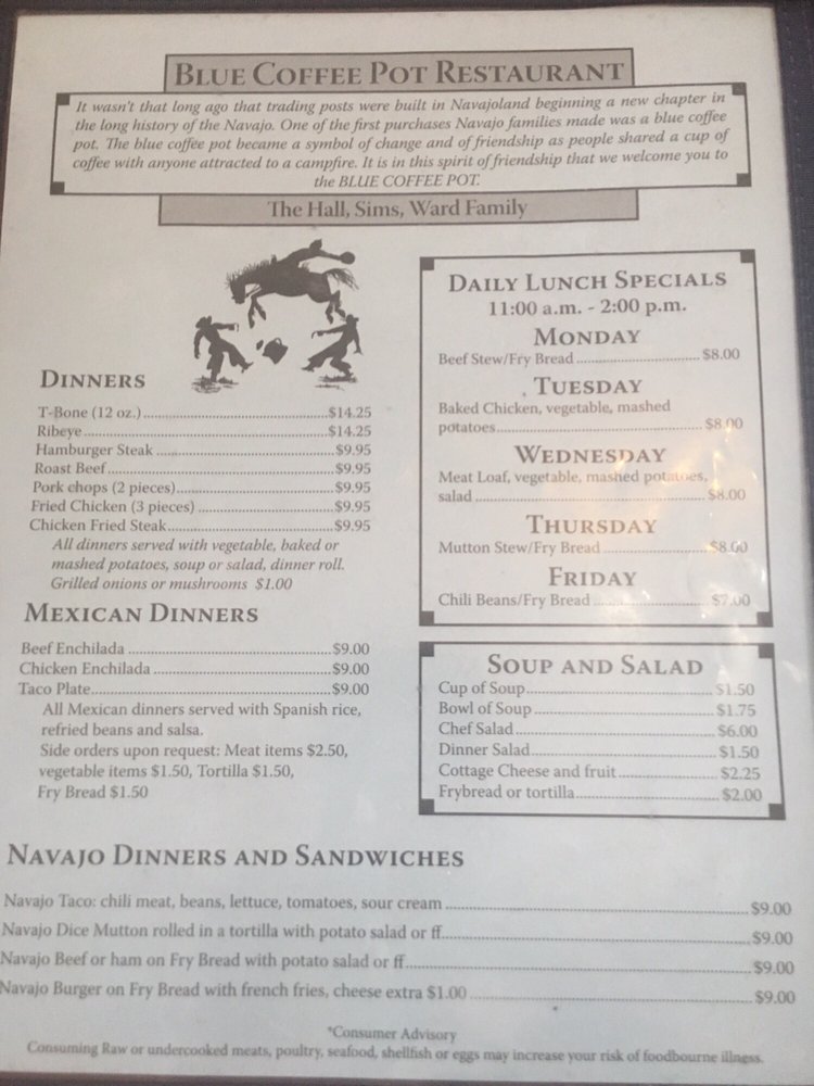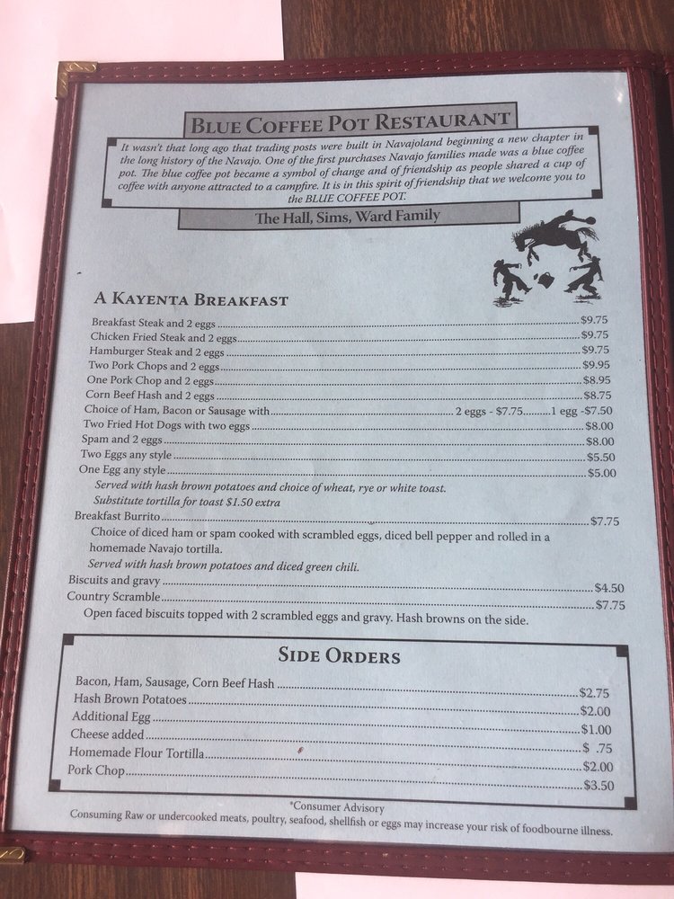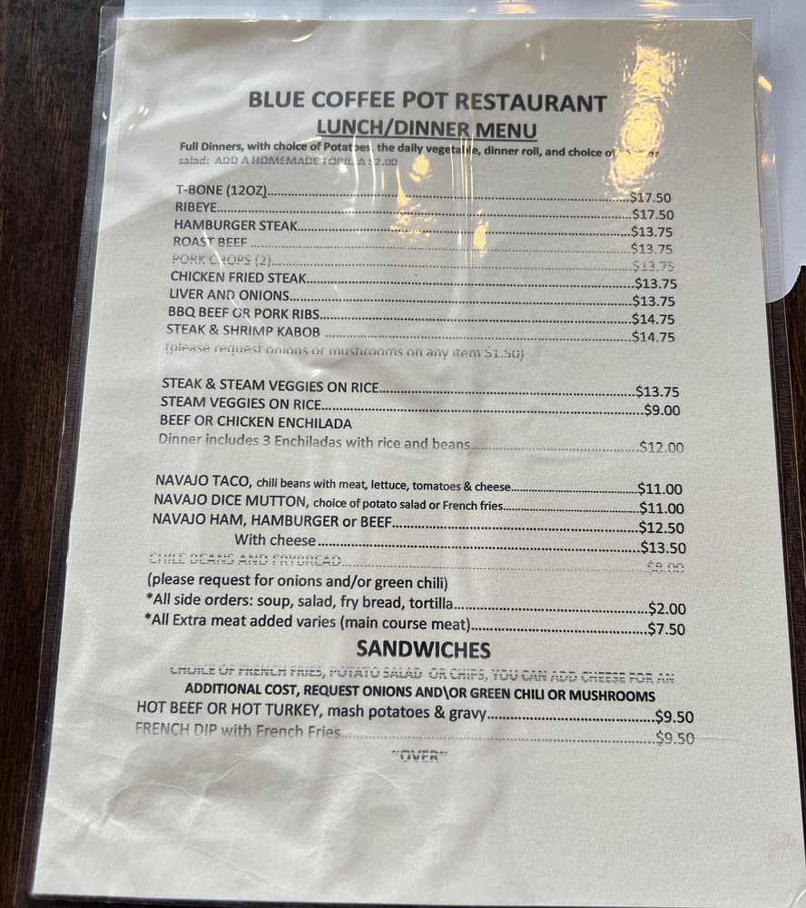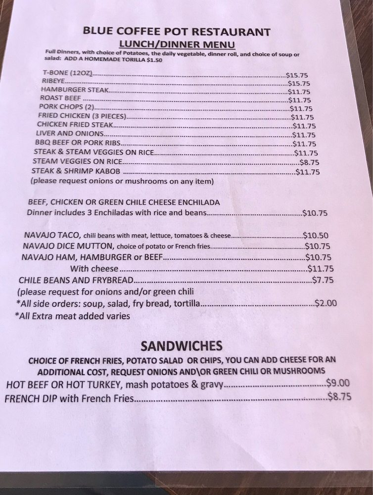 Overall, Blue Coffee Pot Restaurant is a must-visit for anyone traversing the scenic routes of Kayenta. Experience warm hospitality and indulging dishes that keep customers coming back.